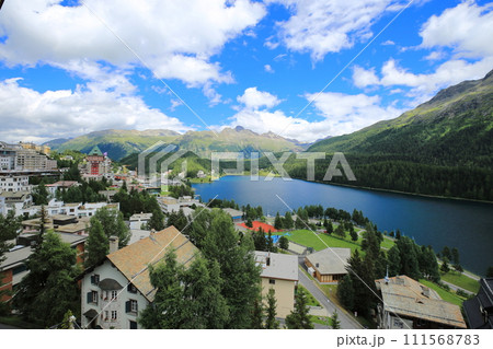 初夏のサン・モリッツ湖と青空(スイス サンモリッツ)