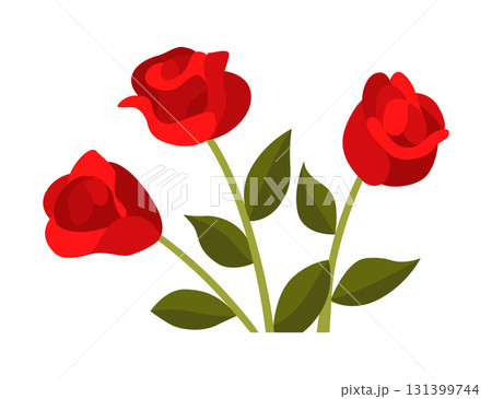 A vibrant bunch of red roses with green leaves on a white background