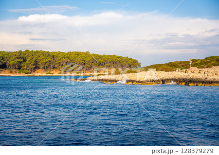 Uninhabited islands of the Lastovo National Park surrounded by calm sea in Croatia. Nature reserve, remote landscape and Mediterranean summer escape