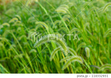 野原のエノコログサ(ネコジャラシ)Green foxtail in field