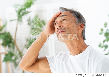 シニア男性 考える 横向き