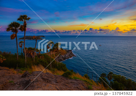 View point, sunset at Phrom thep cape or Laem Promthep is symbol Phuket island, Thailand. Most popular in vacation or holiday for tourism and famous.