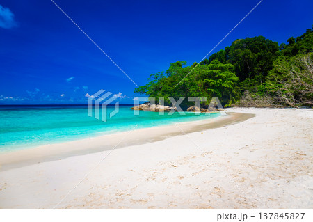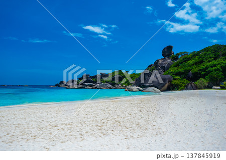 Tropical islands of ocean blue sea water and white sand beach at Similan Islands, Phang Nga Thailand nature landscape