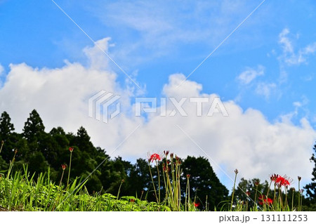 【秋素材】朝日を浴びる彼岸花【長野県】