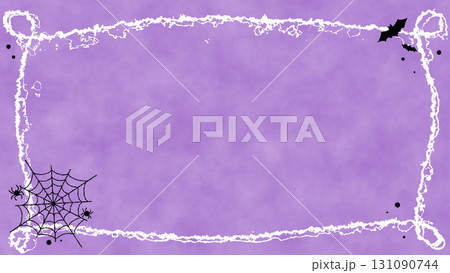 ダークでおしゃれな薄紫背景のハロウィン壁紙(白フレームと黒い蜘蛛の巣)