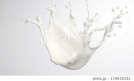 "白い背景に宙に舞うスプラッシュな牛乳のクローズアップ."