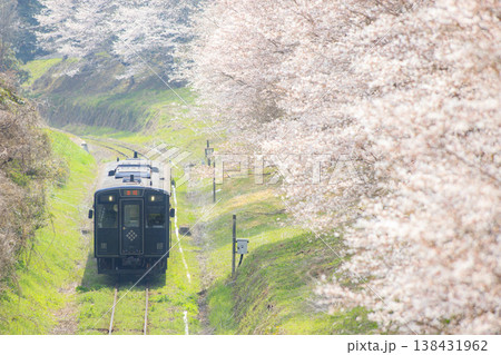 桜と「SL人吉」(JR九州)