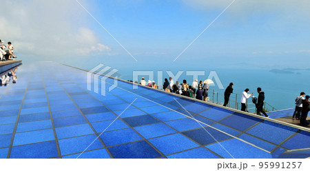 びわ湖テラスで琵琶湖を眺める観光客、琵琶湖テラスの風景