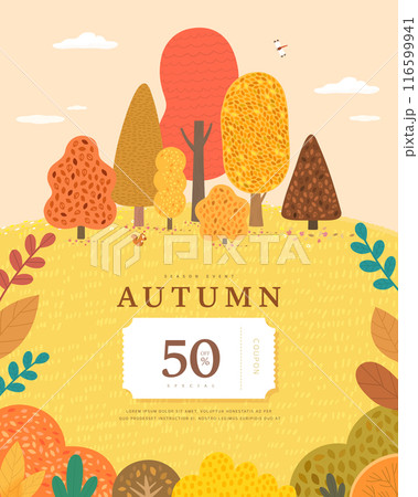 Autumn shopping frame illustration. Korean Translation "welcome fall, Fall benefits"