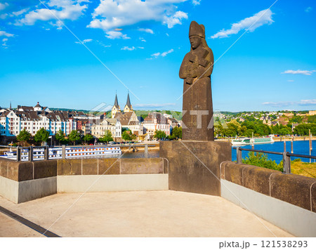 Nuremberg, Germany, August 2, 2023. Detail of one of the many statues that characterize the golden fountain in the market square. Travel destinations and tourist attractions.