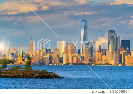 Manhattan city skyline with Statue of Liberty, cityscape of New York city