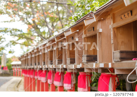 【島根】城山稲荷神社 参道に並ぶ狐の石像と置物(松江)