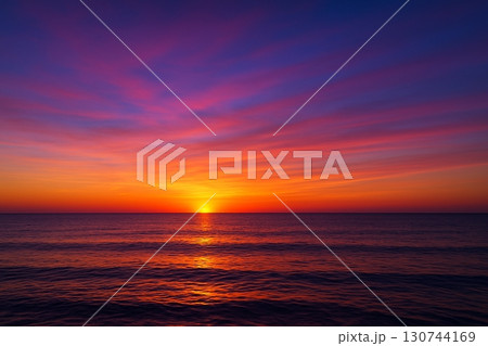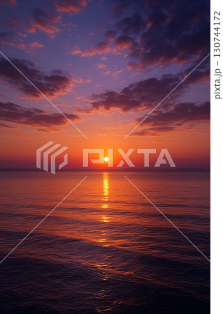 マジックアワーに輝く海と夕日の幻想的シリーズ