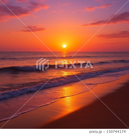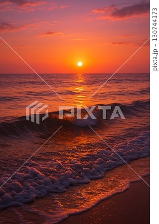 【AI生成画像】南国の夕焼けが広がる浜辺の風景