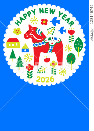 かわいいダーラナホースの2026年用年賀状用ベクターイラスト