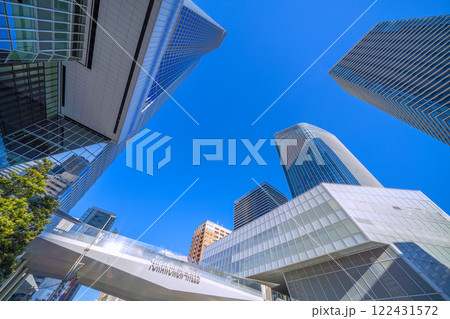 日本の東京都市景観 虎ノ門ヒルズステーションタワー(虎ノ門ヒルズ駅)向い側のグラスロック棟などを望む
