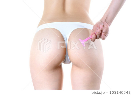 T字カミソリを持つ下着の女性の形の綺麗なお尻 ムダ毛処理 ケア 脱毛除毛 お手入れ