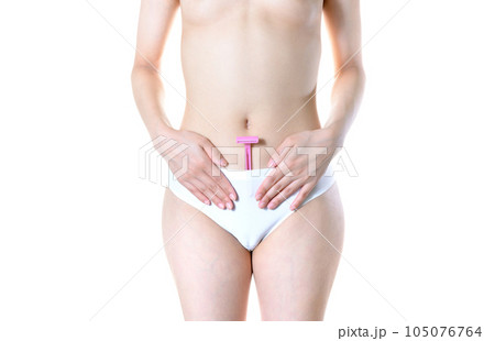 女性の下半身の下着にT字カミソリ ムダ毛処理 ケア 医療美容脱毛 除毛 下腹部
