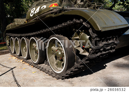 ベトナムのホーチミン市にある統一会堂に置かれている旧ソ連製のT54型戦車のキャタピラ