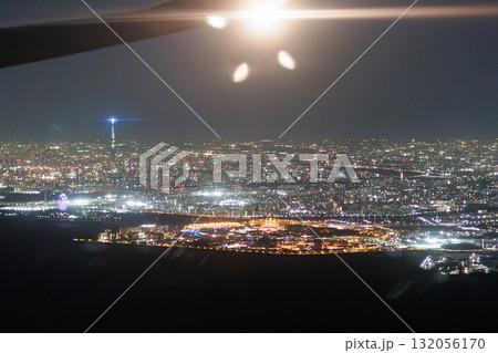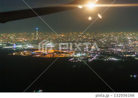 千葉の宝石箱のようなの夜景(飛行機の窓の外)
