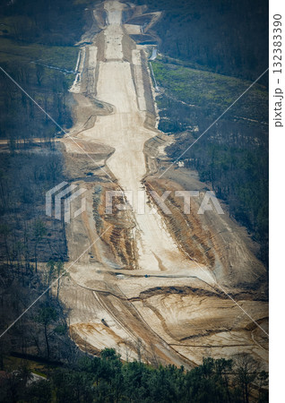 Construction of high-speed train line in France with adjacent highway