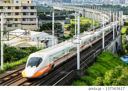 Overlooking view of the Taiwan High Speed Rail trains passing Changhua in Taiwan. It is the only high-speed railway in Taiwan.