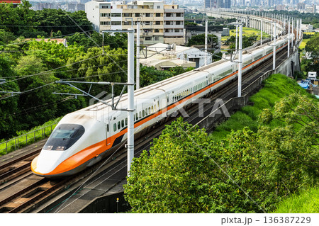 Overlooking view of the Taiwan High Speed Rail trains passing the Waipu of Taichung in Taiwan, It is the only high-speed railway in Taiwan.