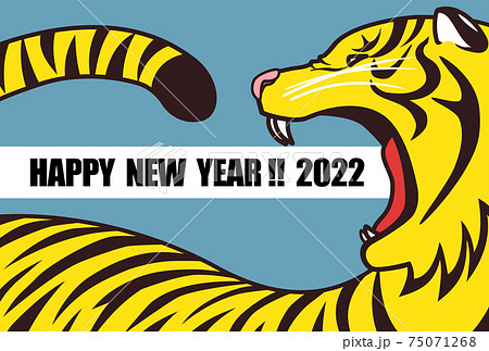 2022年寅年 横向きで大きな口を開けた迫力ある虎の年賀状