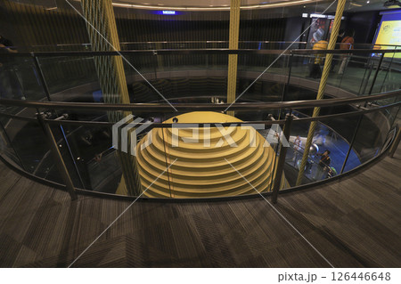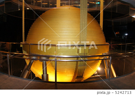 Wind-damping ball in the Observation of Taipei 101, Taiwan. It's called a Tuned Mass Damper (TMD), and its main purpose is to reduce swaying by strong winds.