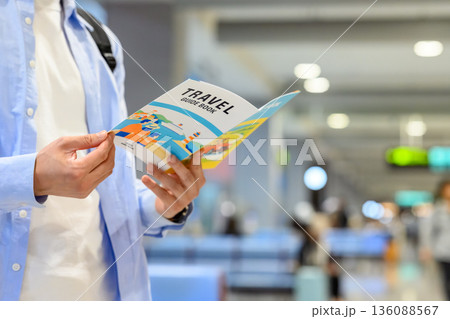 旅行ガイドブックを読む人 ■撮影協力:関西国際空港(KIX)