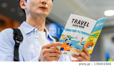 男性がガイドブックを読む _■撮影協力:関西国際空港(KIX)