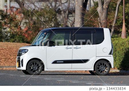 駐車場に並ぶ乗用車(ダイハツ・タント 4代目)
