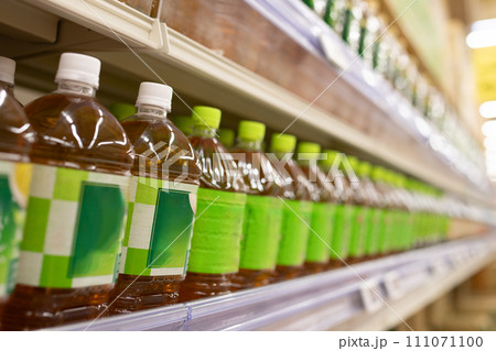 陳列された沢山のペットボトル飲料