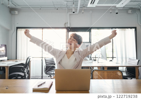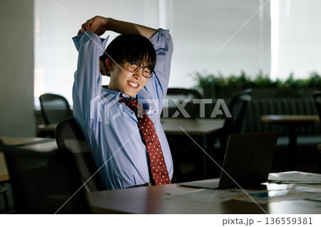 伸びをするビジネスマン