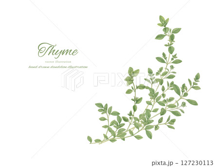 水彩で描いたタイムのイラストセット