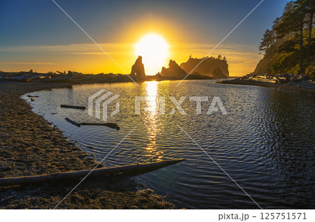 Colorful sunset at Ruby Beach in Olympic National Park, Washington state
