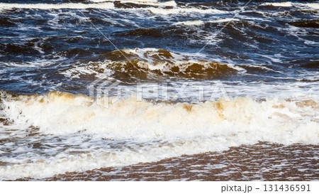 Close-Up of Rough Sea Waves Crashing onto the Shore on a Windy Day