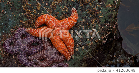 潮だまりのヒトデとイソギンチャク Tidepool in Olympic NationalPark
