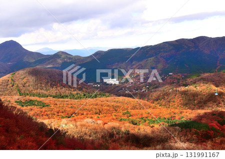 [定額] 晩秋の紅葉の箱根 桃源台の風景