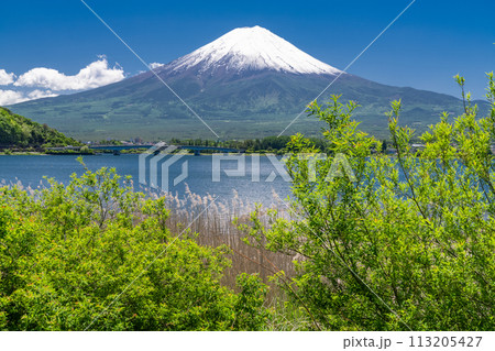 《山梨県》初夏の富士山・新緑の河口湖湖畔