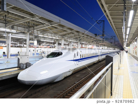 夕刻の新大阪駅に停車中のN700系のぞみ