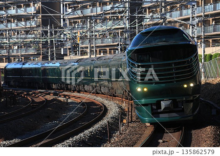 出発する豪華寝台列車瑞風