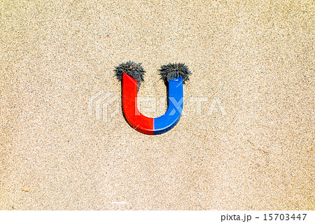 砂鉄が付いたU型マグネット