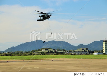 自衛隊のヘリコプターからリペリング降下訓練(UH-60JA 富士 総合火力演習 静岡県)