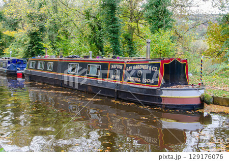 ポンテカサステ水路橋 停泊するナローボート(ウェールズ)