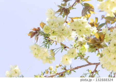 満開の八重桜と青空(ウコン桜・春イメージ)