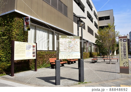 小田原お城通りの街並み 小田原市民交流センターUMEKOと観光案内板