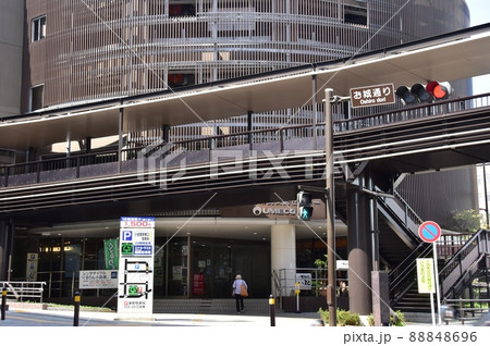 小田原お城通りの街並み お城通り交差点と小田原市民交流センターUMEKO