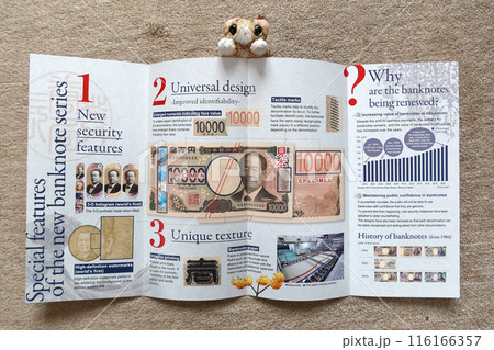 Japan Bank new series of Banknotes information brochure given at Currency Museum in Nihombashi, Tokyo, Japan. July 3, 2024