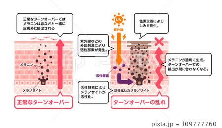 健康な皮膚としみの発生した皮膚のターンオーバー比較イラスト